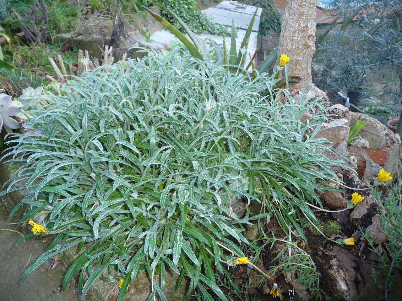 Tenemos un cardenche o Cylindropuntia imbricata, una opuntia nativa de Norteamérica y según algunas webs resistente hasta la zona 4 aunque me extraña un poco, también vemos algunas calas o Zantedeschia junto a un lampranthus rosa y otras cactáceas como Aloe saponaria y una Stapelia variegata. En la segunda foto, llama la atención un arctotis amarillo que se ha hecho enorme y que lo cogí de por ahí siendo muy pequeñito, también hay aunque no se vea Sedum palmeri, Sedum rubrotinctum, Sedum sediforme (nativo de las montañas), Sedum pachyphyllum y Graptopetalum paraguayense.