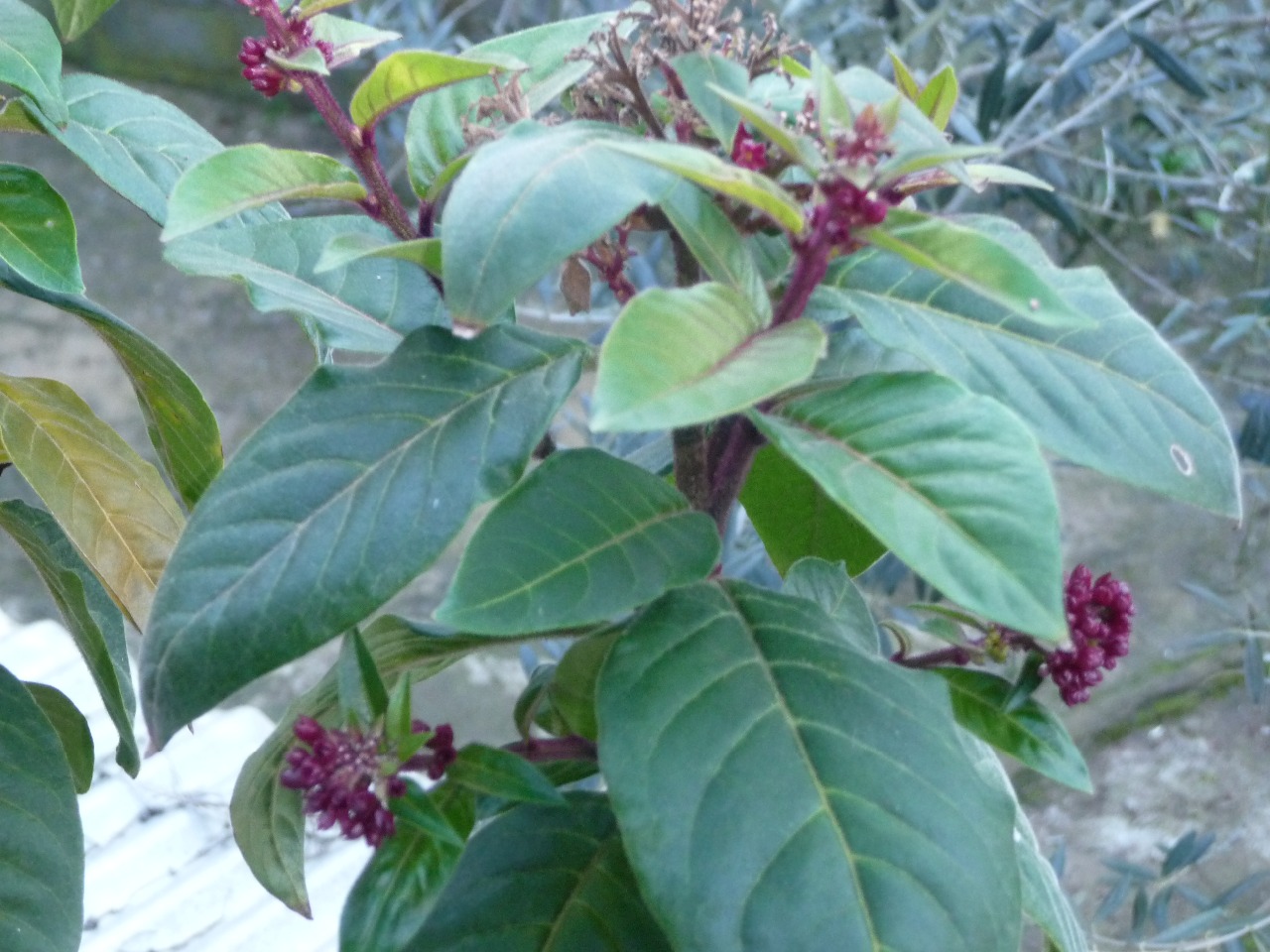 La segunda foto corresponde a una planta nativa del centro de méxico y perteneciente a la misma familia que la dama de noche, aunque más resistente al frío y de hecho florece prácticamente durante todo el año menos puede ser que durante el verano. Se llama Cestrum fasciculatum "Newellii". En la siguiente foto se ve más de lejos.
